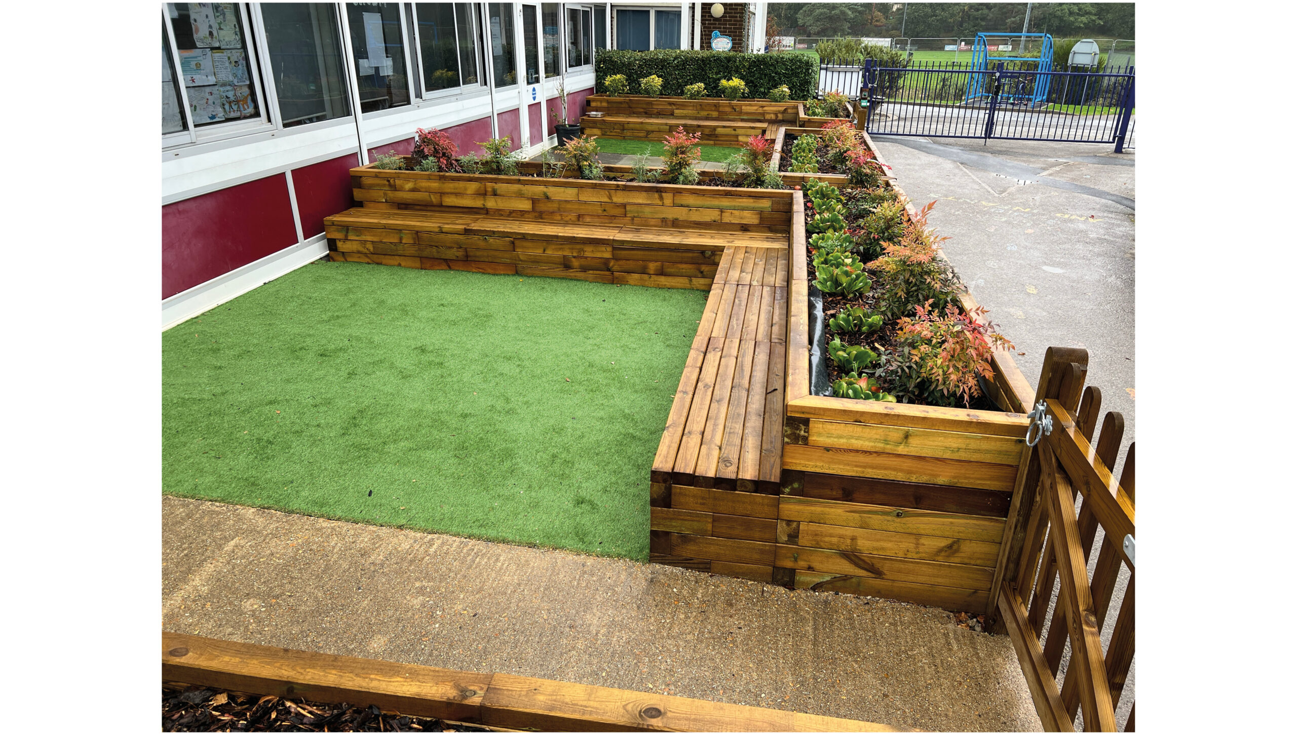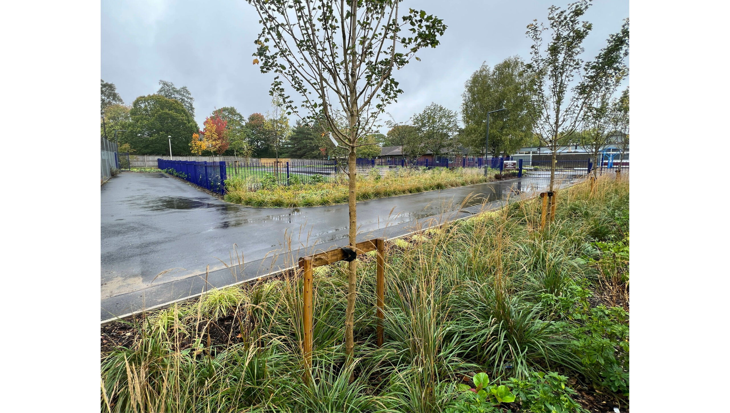 R-LA has been appointed from inception to completion and has devised a landscape scheme that copes with the increased traffic from the school expansion without compromising on outdoor space for the children. The proposal also boasts external classrooms, and nature-based SuDS solutions in the form of rain gardens and bioretention planters which provide opportunities for the educational curriculum.
